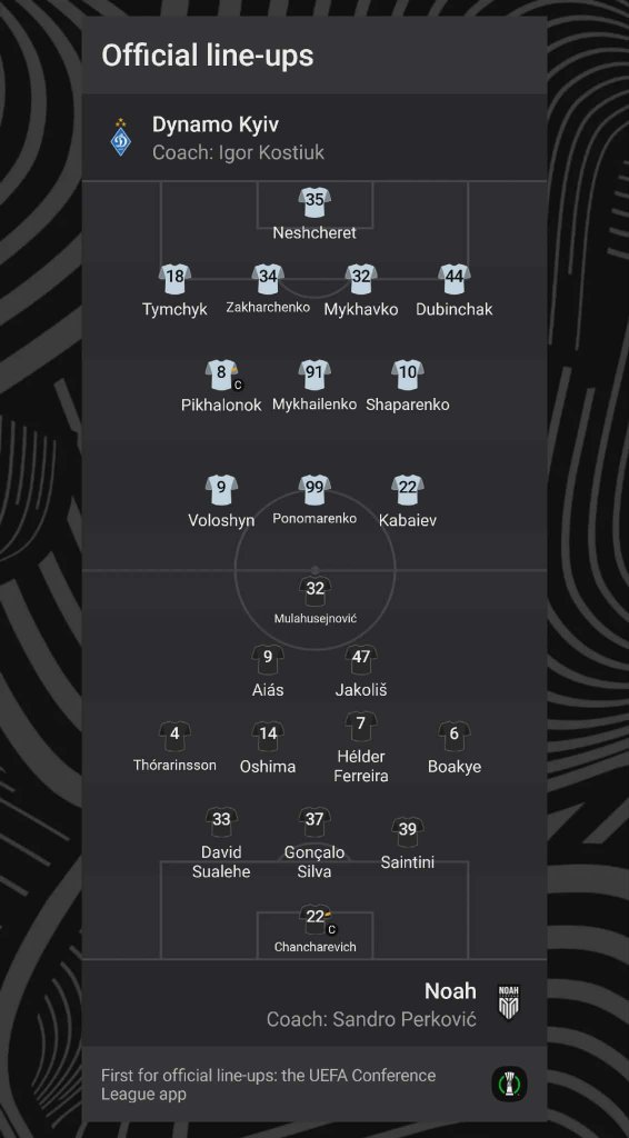 «Դինամո Կիև» – «Նոա». մեկնարկային կազմեր, ուղիղ եթեր