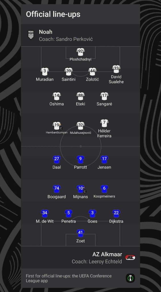 «Նոա» – «ԱԶ Ալկմար». մեկնարկային կազմեր, ուղիղ եթեր 📸