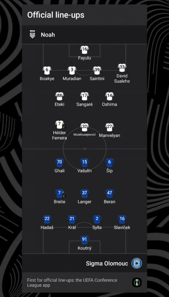 «Նոա» – «Սիգմա Օլոմոուց». մեկնարկային կազմեր, ուղիղ եթեր 📸