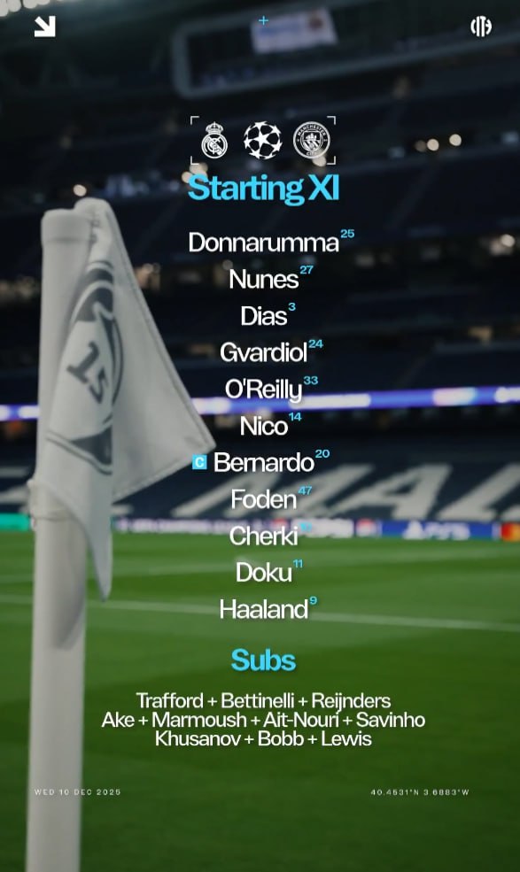 «Ռեալ Մադրիդ» – «Մանչեսթեր Սիթի». մեկնարկային կազմեր, ուղիղ եթեր 📸